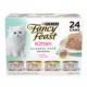 Features & Benefits: Fancy Feast cat food variety pack specially made for kittens. Purina Fancy Feast wet food for kittens featuring real ocean whitefish, turkey, chicken or salmon and made without artificial colors or preservatives. Crafted with real, high–quality ingredients to deliver 100 percent complete and balanced kitten wet food. Delicious kitten wet food variety pack developed in partnership with our expert nutritionists to create a unique and unforgettable taste experience for your growing feline. Canned kitten food that's skillfully crafted in Purina's own U.S. facilities where it undergoes regular quality and safety checks.